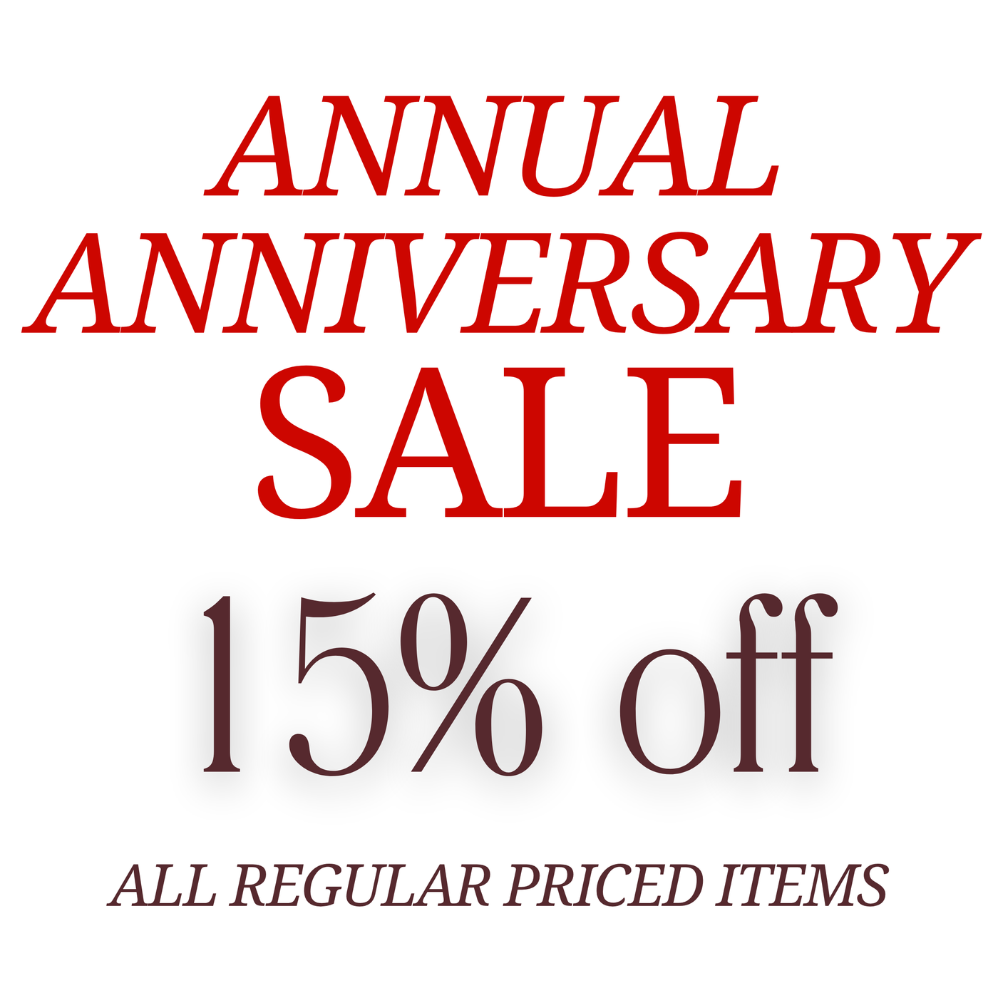 Use discount code '22ANNV' to get 15% off all regular priced items!
